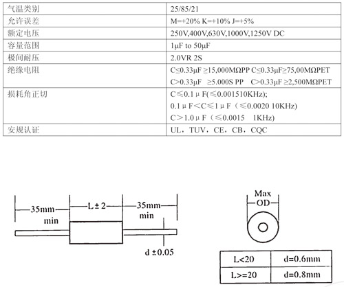 具有電性能優(yōu)良、可靠性好、耐高溫、體積小、容量大及良好的自愈性能。 工藝 軸向金屬化聚丙烯膜圓、扁電容器以金屬化聚丙烯膜作介質(zhì)和電極,用瑪拉阻燃膠帶外包和環(huán)氧樹脂密封。